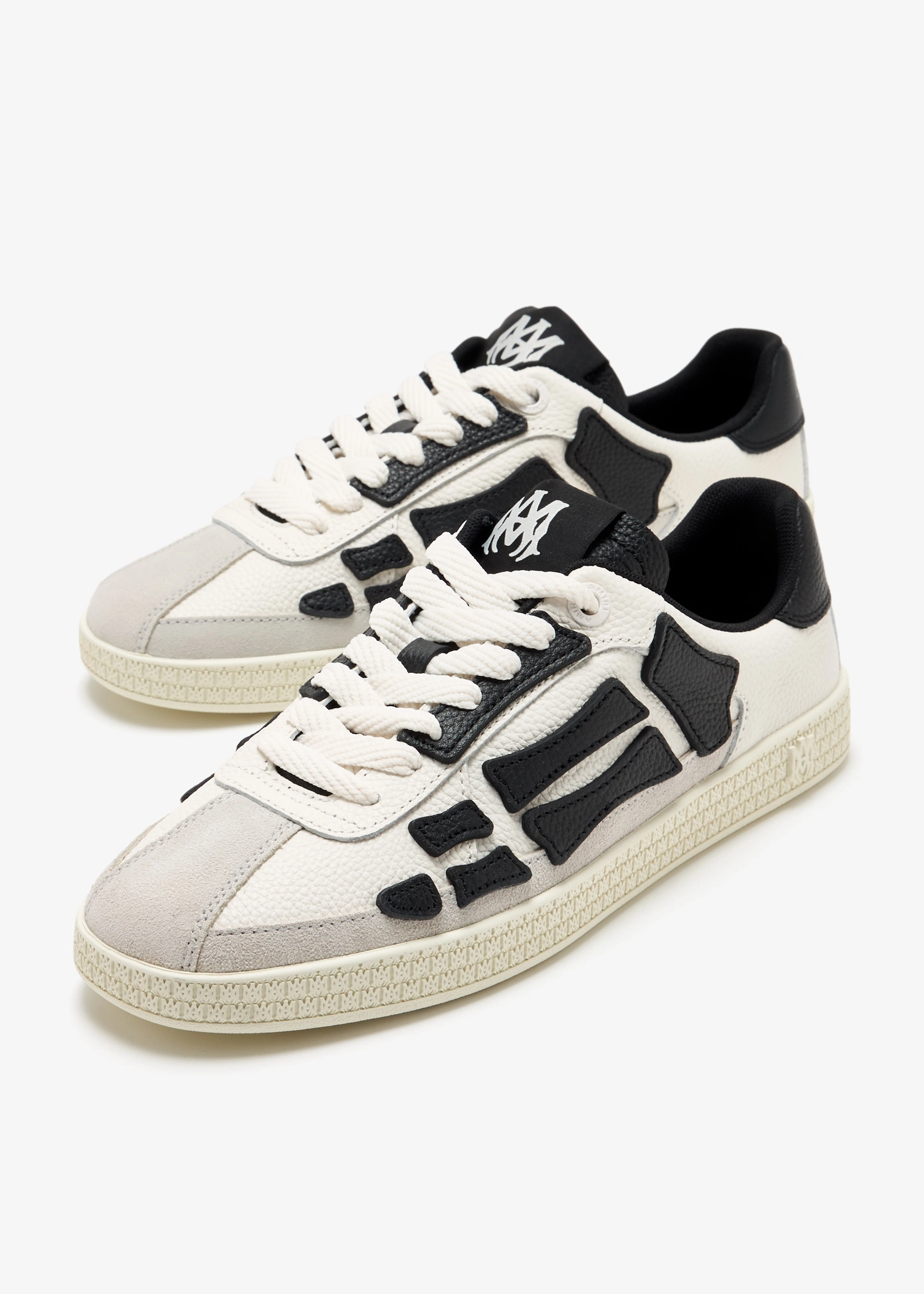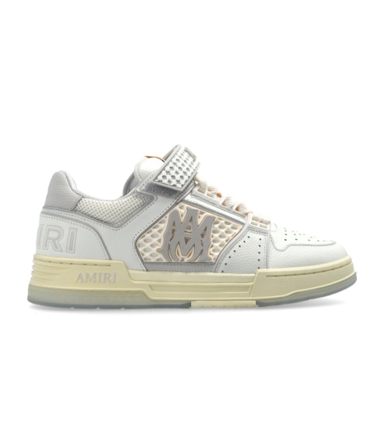 Confeccionadas en piel blanca con detalles en gris y negro, destacan por su silueta sobria y su confección de precisión italiana.