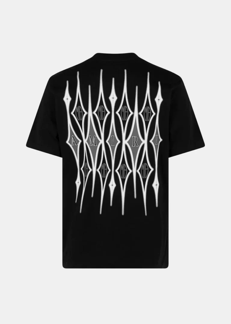 La Amiri Geometric Spine Tee fusiona arte y moda con su diseño gráfico exclusivo.