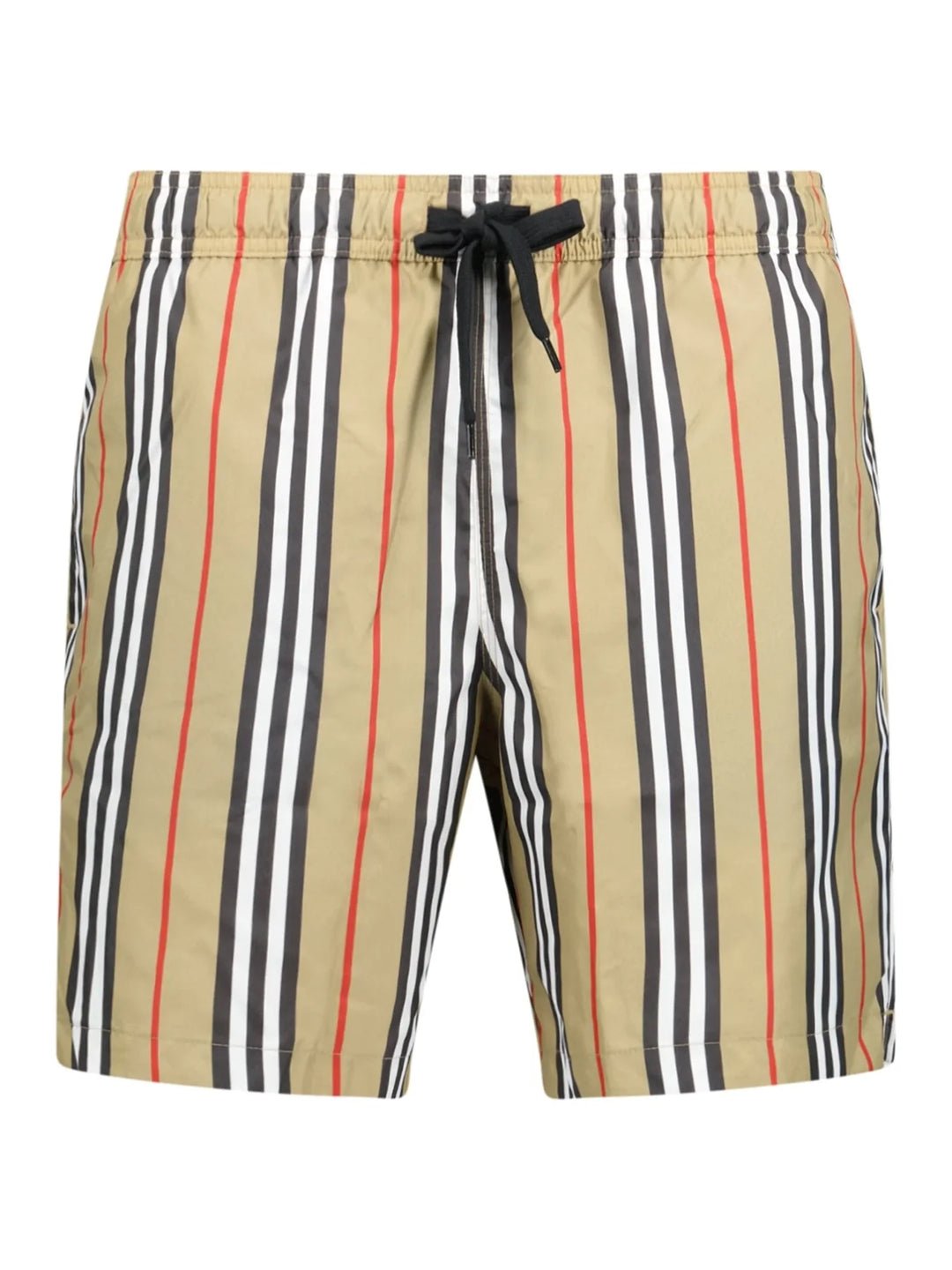 El Bañador Burberry Archive Beige con un corte «relaxed fit» es perfecto para estar de lujo incluso en tus días de playa o de piscina, esta confeccionado con poliéster y materiales que secan rapidamente, con sus colores que identifican su marca beige/marron con rayas negras, blancas y rojas.