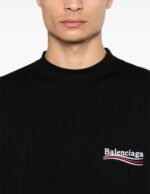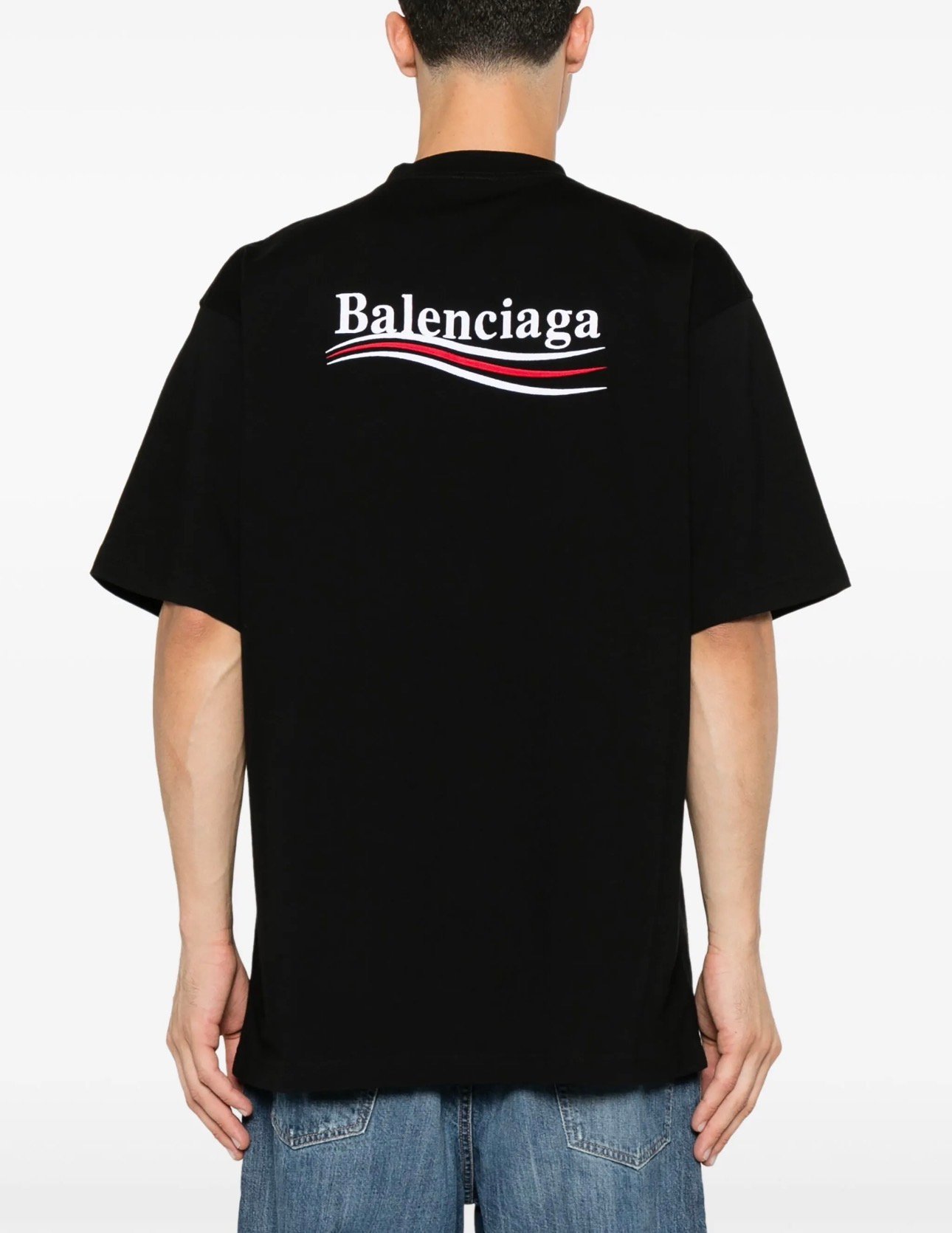 Fabricada en algodón premium, presenta un tono negro y el logo BALENCIAGA impreso en blanco con tonos rojos en el pecho.