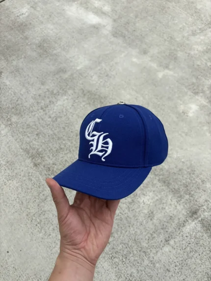Confeccionada en algodón premium, presenta el distintivo logo CH bordado en hilo dorado sobre una base azul royal, aportando contraste y carácter.