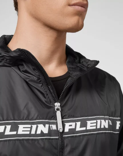 Fabricada con tejidos ligeros y resistentes, cuenta con cierre frontal, capucha ajustable y el icónico logo de la marca en relieve. Su estilo versátil permite lucirla tanto en outfits casuales como en combinaciones más refinadas.